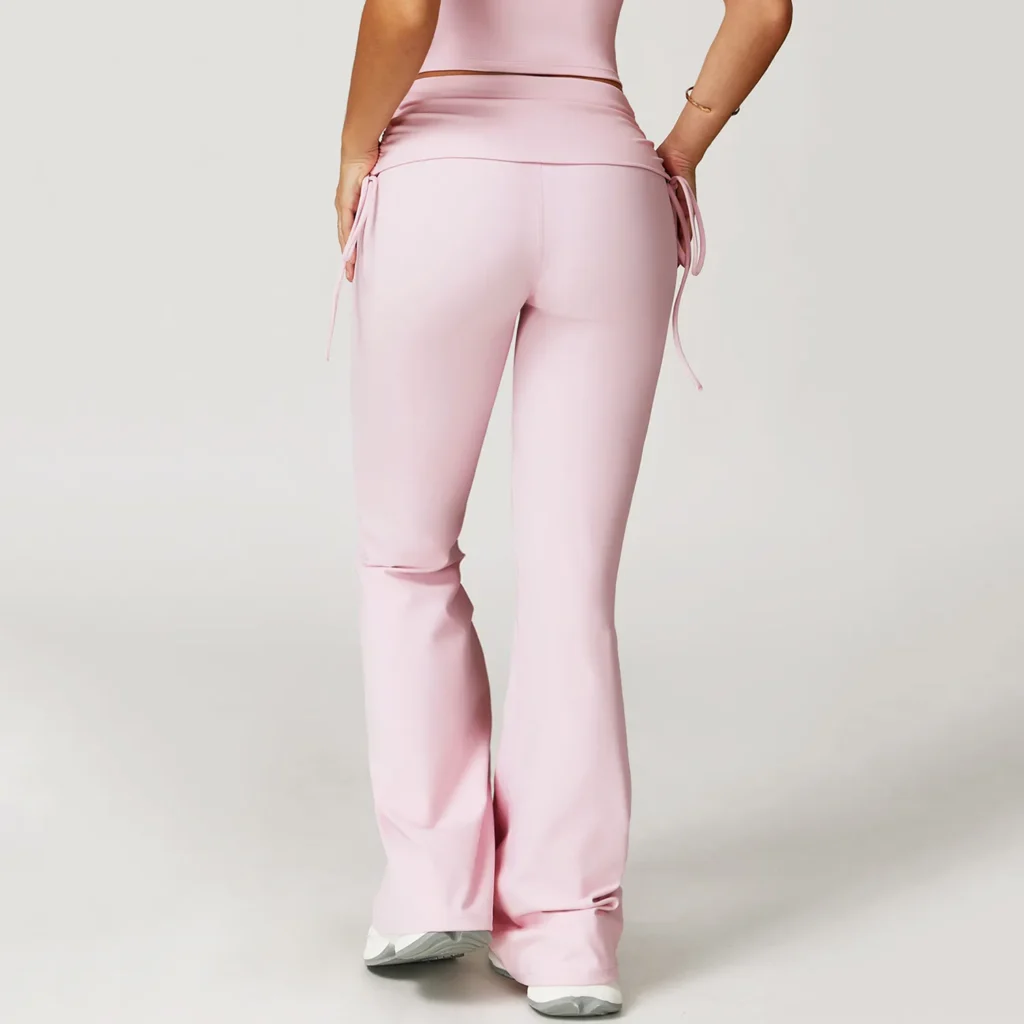 Folded Waist Yoga Flared Pants with Drawstring Bulk Sportswear Yoga Pants Manufacturers